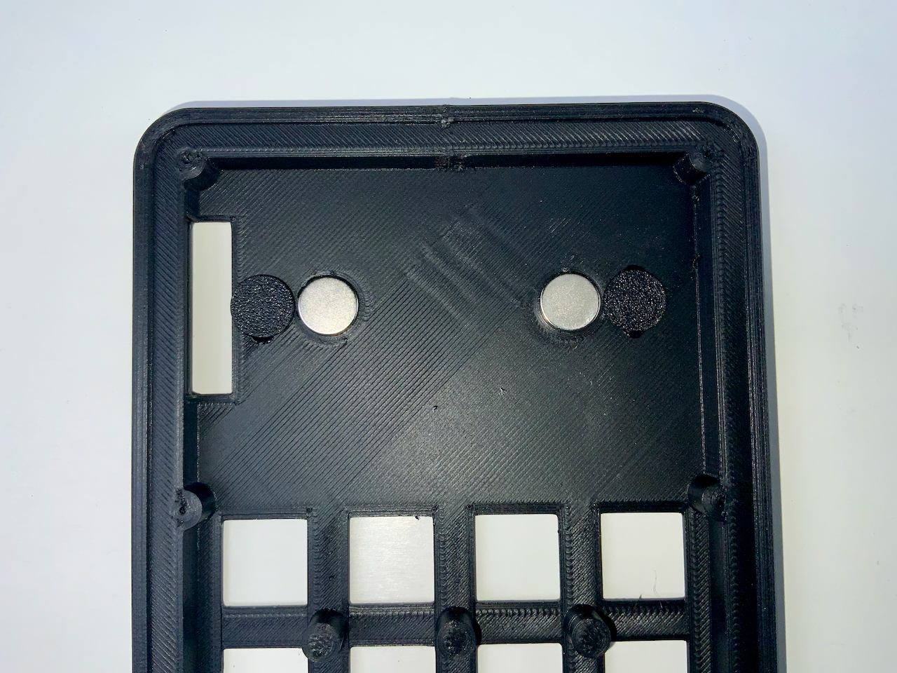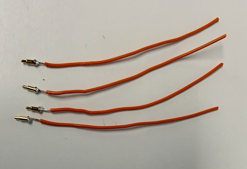 Short pieces of heat shrink tubing are put over the pogo pin connections. It is mainly a visual improvement because the pogo pins can be seen from the side. Use a color that matches your case.