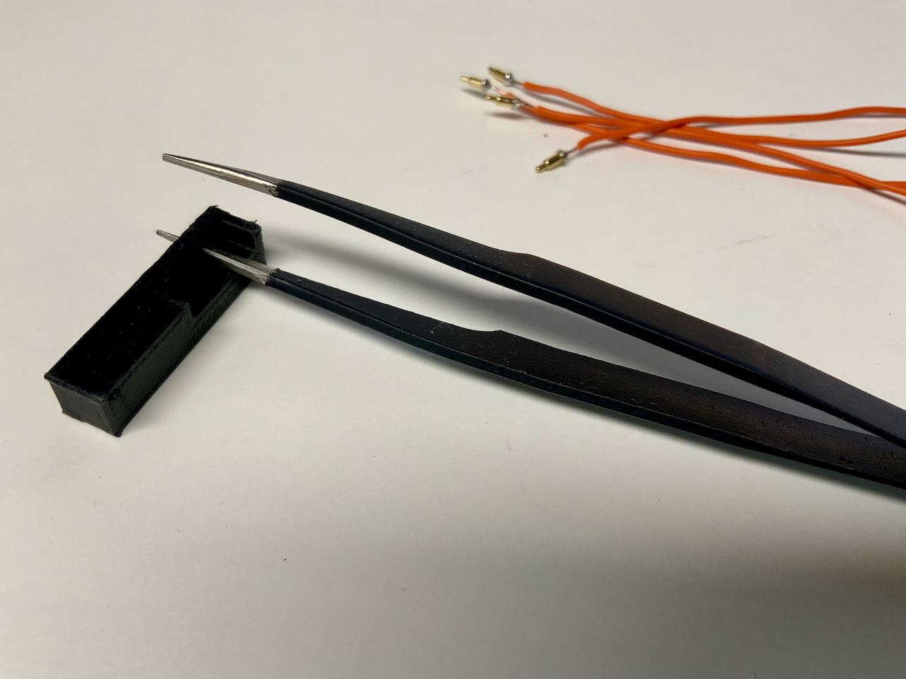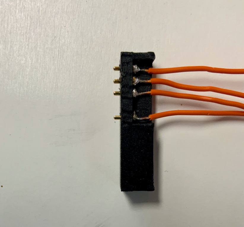 Before you start working on the Pogo Pins, make sure that the connector can be inserted into the designated hole with some force. It should not be too loose so that you can adjust its position later on. If the part doesn't fit tightly into the hole, try printing it again with different settings.