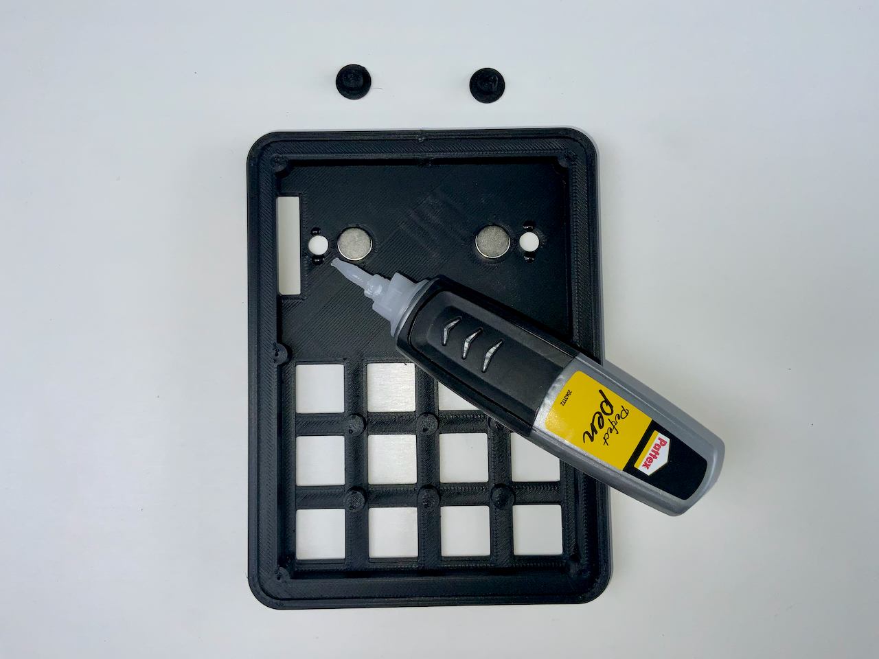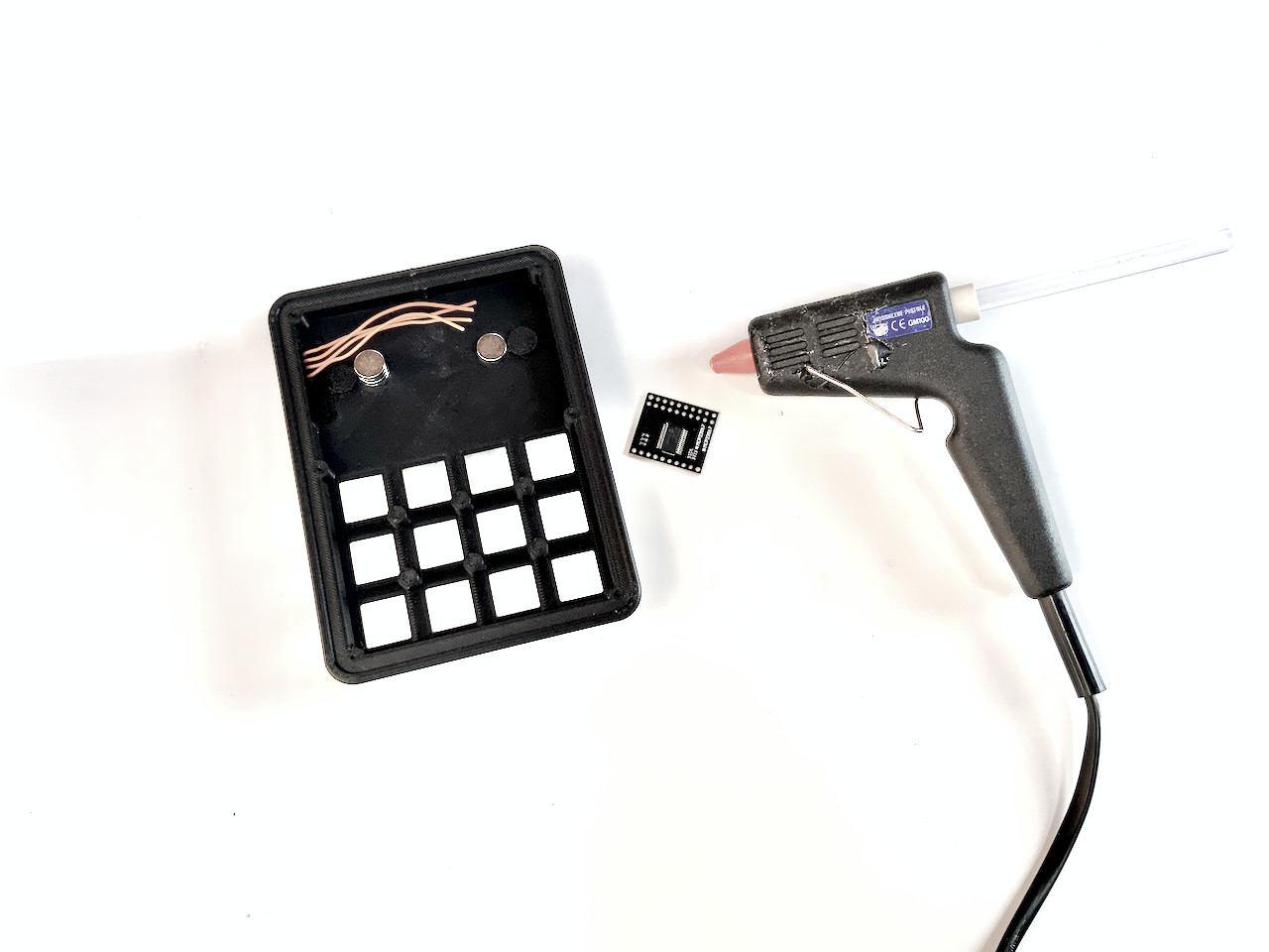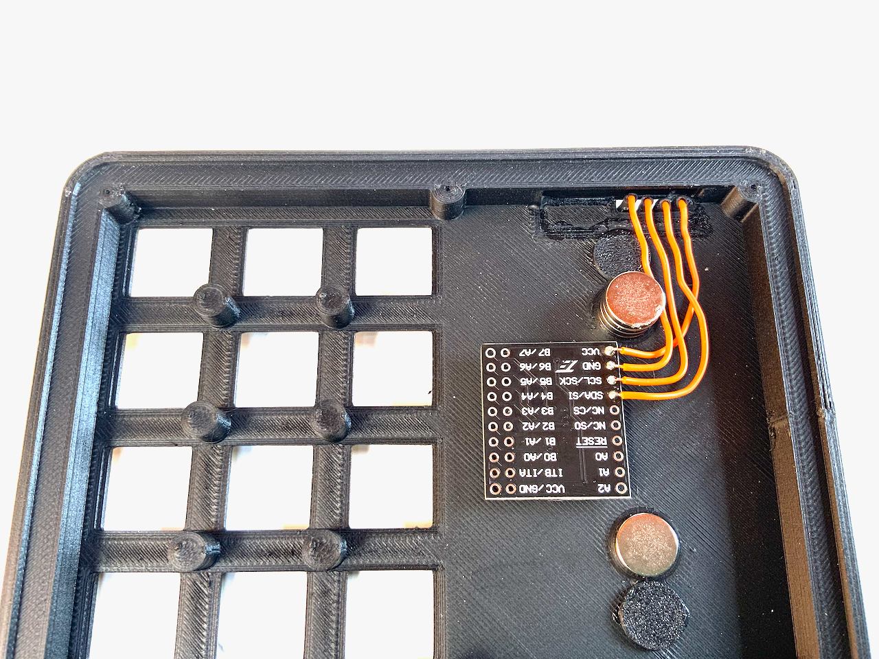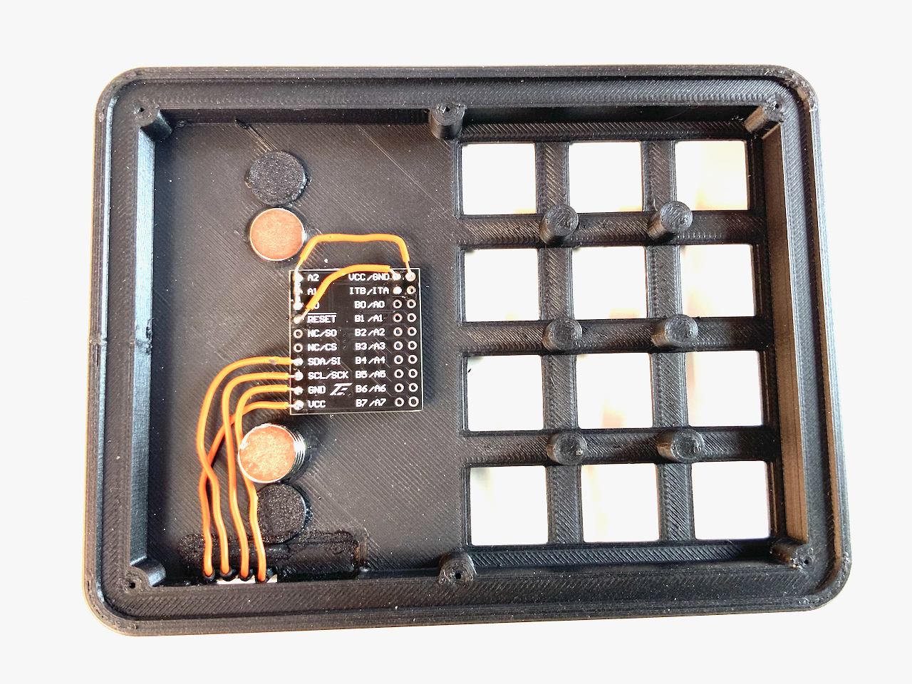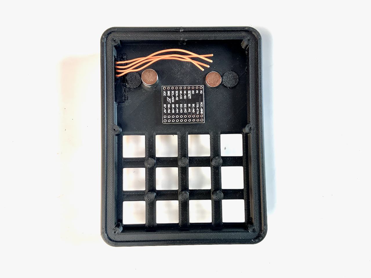 I know they are a bit expensive. You can also build the keyboard without the Pogo pins, and just use a cable with a Qwiic connector instead. In that case, the cable is fed through the connector hole and plugged into the socket on the back of the badge. If you want to do it this way, you don't need to print Connector.stl. But I recommend the variant with the Pogo Pins, because the Qwiic socket on the badge is not meant to be plugged in and out all the time. The socket can easily be damaged and it is not so easy to detach the badge from the keypad.