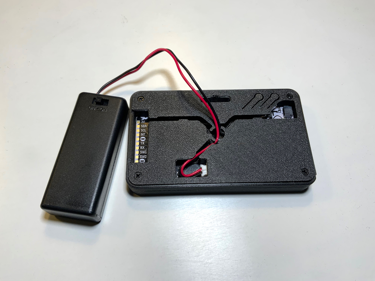 All connections are still accessible. Any cables you might want to connect can be routed to the centre of the back of the badge. This way you have one place where all the cables come out. In combination with the magnets, the badge can be used as a display for all kinds of projects. Of course, you can still use the badge as a badge, because the hole for the strap is also there. I especially like the barely visible buttons on the front of the badge.