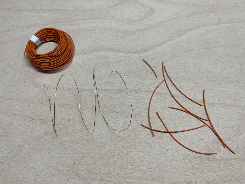 Cut 42 pieces of copper cable with a length of 6 - 7 cm. Remove the insulation from the ends and tin the cables.